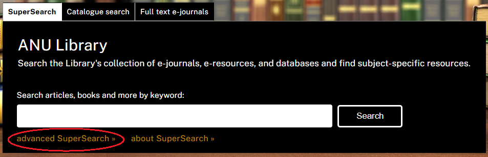 To get started select advanced SuperSearch from the ANU Library homepage: